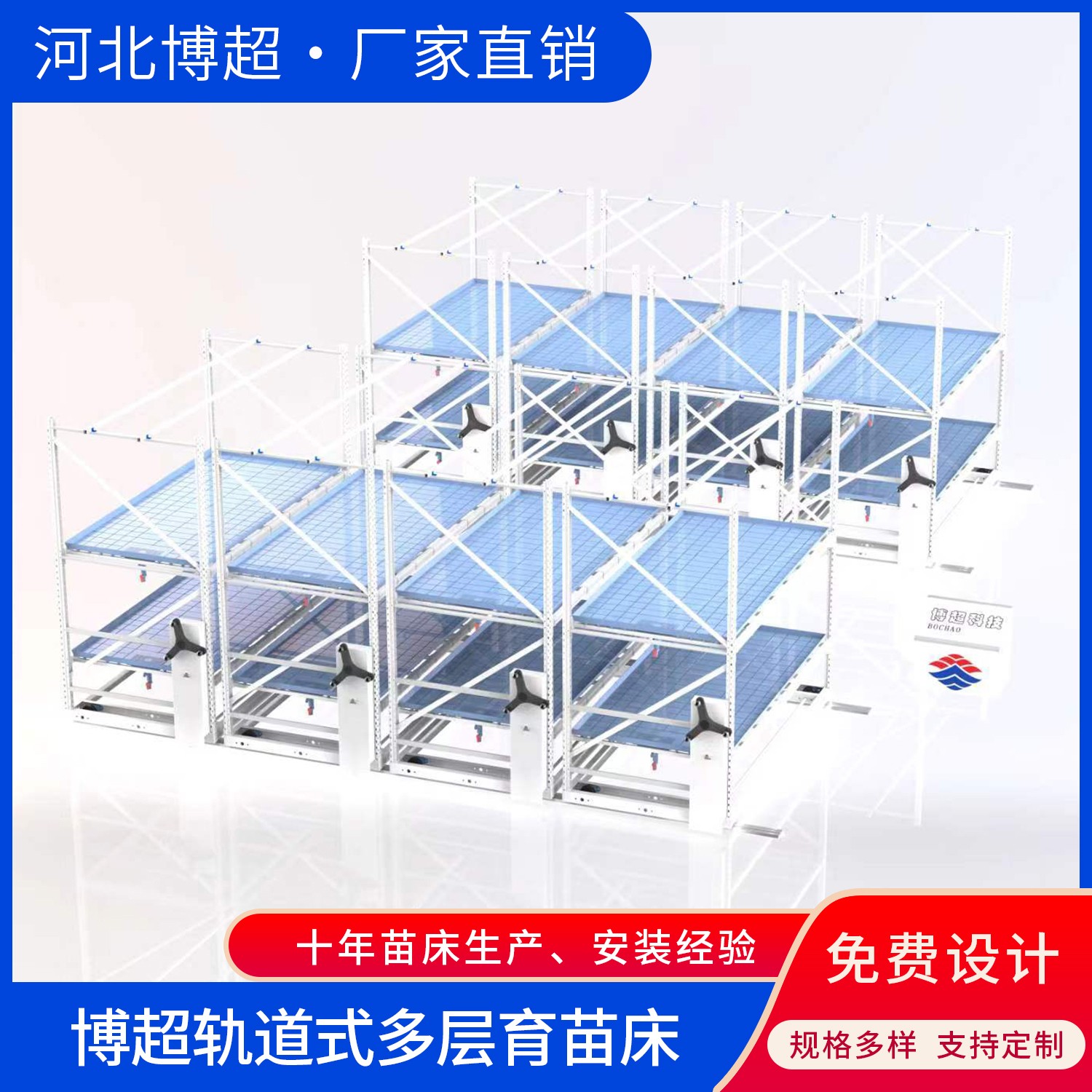 4:軌道式多層移動(dòng)苗床可根據(jù)室內(nèi)面積定制實(shí)際尺寸:,方便使用;